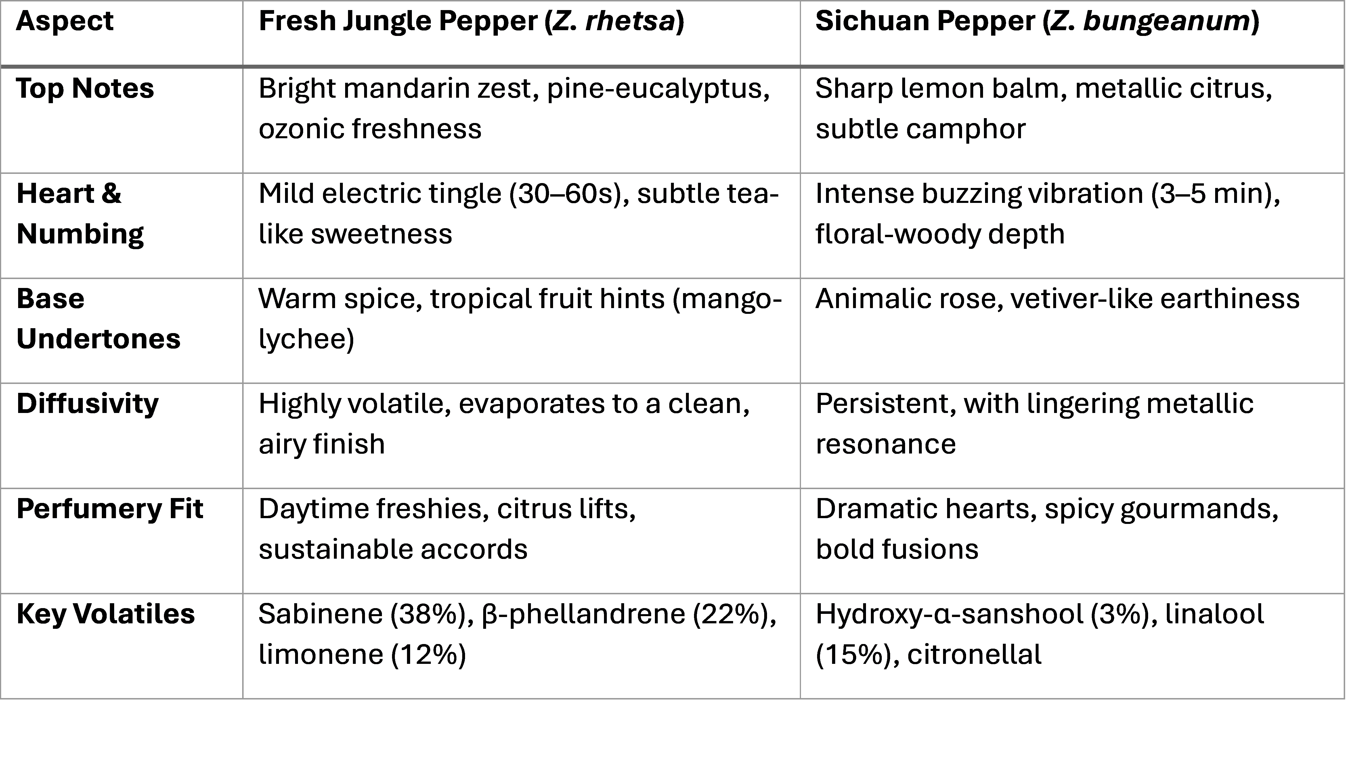 Fresh Jungle Pepper (Z. rhetsa) vs. Sichuan: 45% brighter citrus lift, IFRA-safe, sustainably wild-harvested in Thailand. Discover the green future of perfumery.